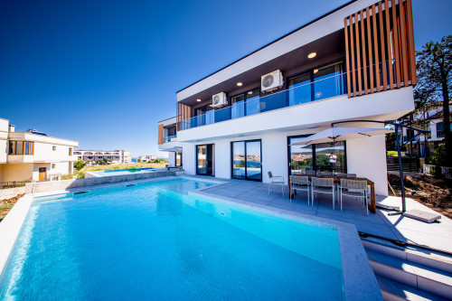 BULGARIA SOTHEBY’S INTERNATIONAL REALTY presents to your attention a wonderful newly built semi-detached house with an excellent location in the Budjaka - Paradise Bay area and fantastic views of the sea and Sozopol. The property is offered fully furnished and ready to move in. It has three bedrooms, four bathrooms, a private pool of 55 sq m and two outdoor parking spaces. All rooms are oriented to the west, with unique sea views from each of them.