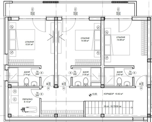 Second level: three panoramic bedrooms, each with its own bathroom with toilet; terrace, which is accessible from all three bedrooms; service room.