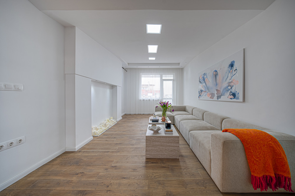 - The floors are made of high-quality granite tiles and natural parquet, the walls are painted with latex in neutral colors;