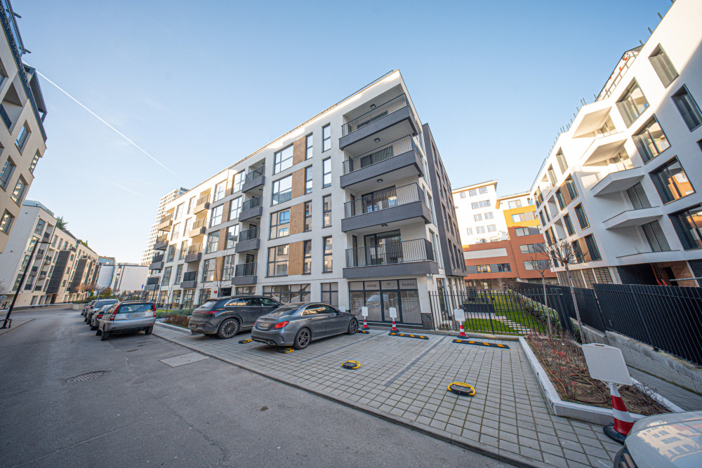 An underground parking space can be purchased with the apartment at an additional price of EUR 35,000 excluding VAT.