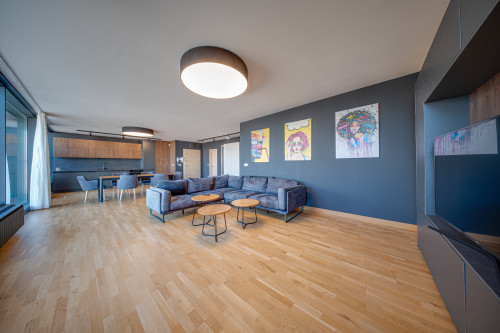 Distribution: spacious living room with dining area and modern, fully equipped kitchen, two bedrooms, two bathrooms with toilets, utility room, terrace.